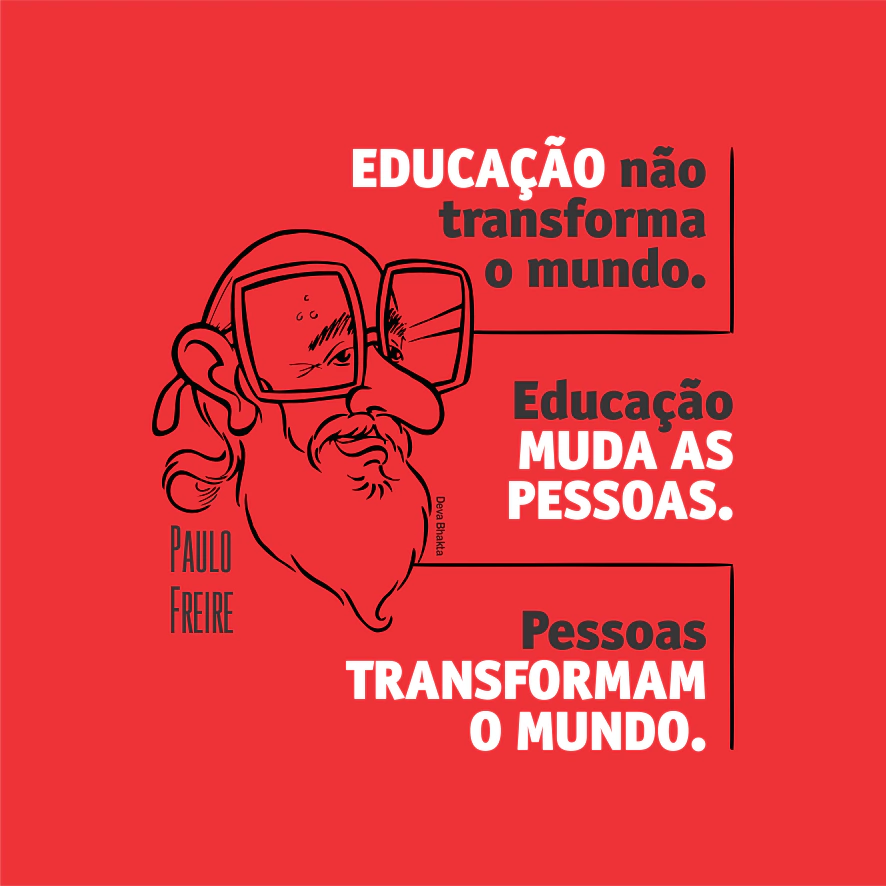 O mais célebre educador brasileiro, autor da pedagogia do oprimido, defendia como objetivo da escola ensinar o aluno a "ler o mundo" para poder transformá-lo.