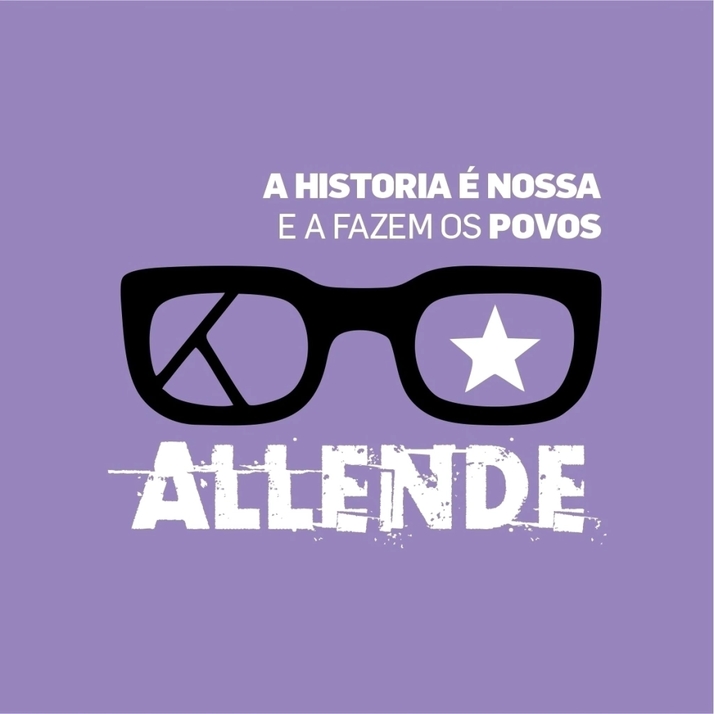 Camiseta branca – Ilustração (na cor preta) dos tradicionais óculos de armação grossa quebrados após sua morte com uma estrela (vermelha). Frase estampada na cor vermelha “A história é nossa e a fazem os povos”, abaixo dos óculos: Allende (na cor vermelha).
