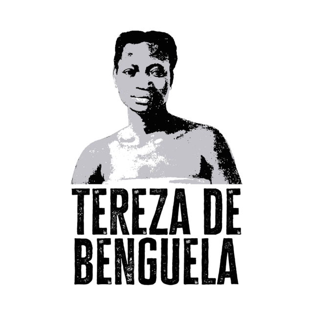 Camiseta branca - Estampa na cor preta e cinza compondo a imagem de Tereza de Benguela e abaixo na cor preta o nome Tereza de Benguela.